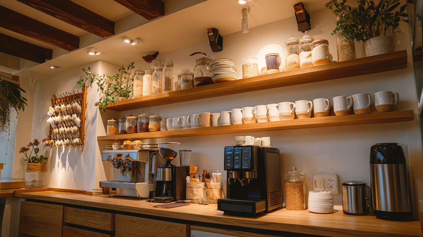 Montivio Wall Mounted Mug Rack - Oak & Brass